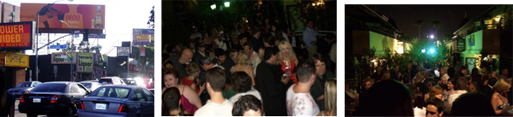 I also produced eleven Comedy Review shows in Los Angeles and AIDA also had a few Open Day performances too. We also had an annual party. Below is a picture taken of the Sunset Strip with the sign in the background reading “AIDA’s 4th Anniversary party” that was at The Viper Room in Los Angeles in 2006. Other photos are from a party on Hollywood Boulevard – over two thousand people attended that night in 2007 in the 90038 postcode district.
