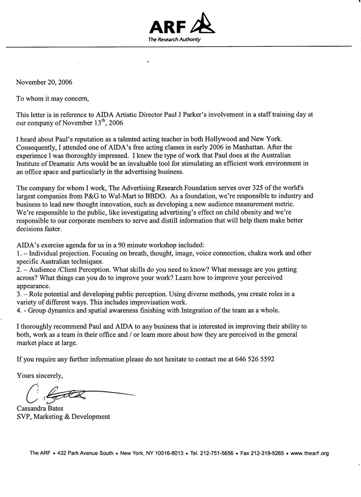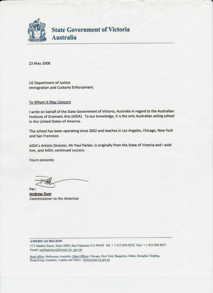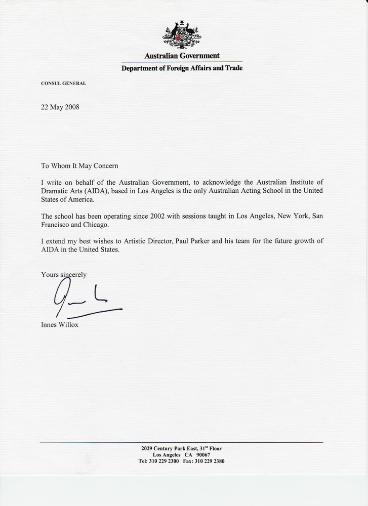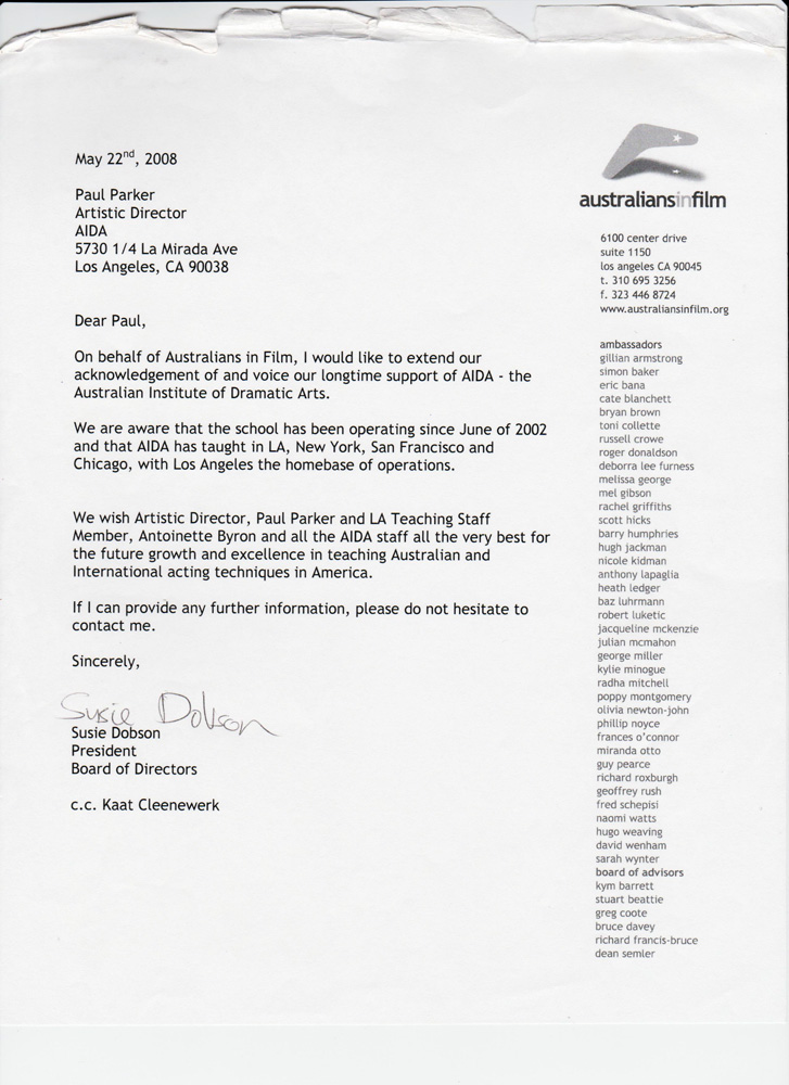 AIDA – Australian Institute of Dramatic Arts – USA 2002- 2011 reference letter reference letter reference letter
