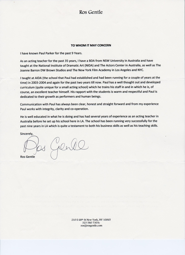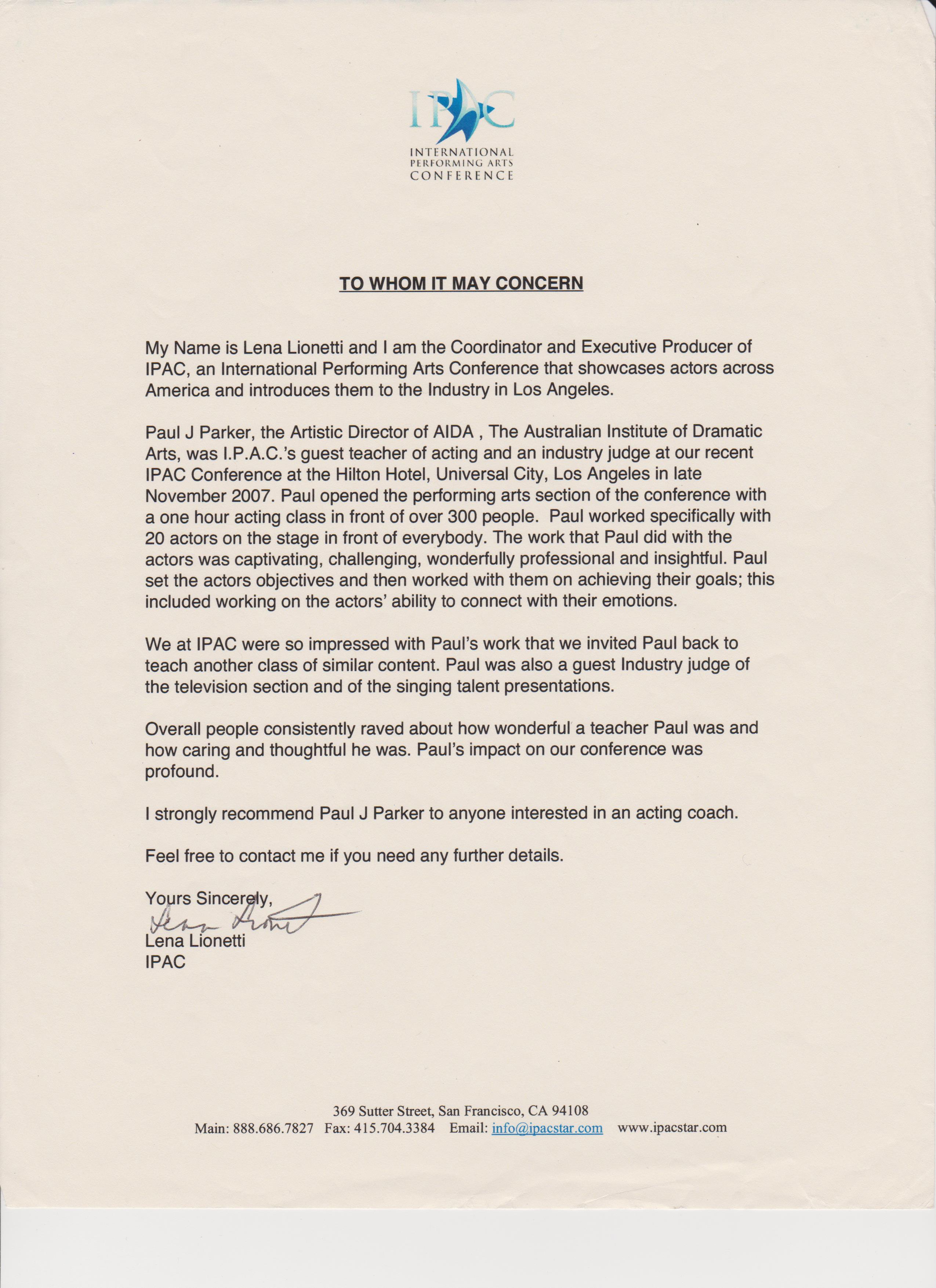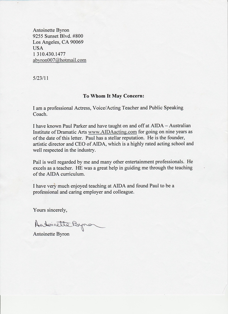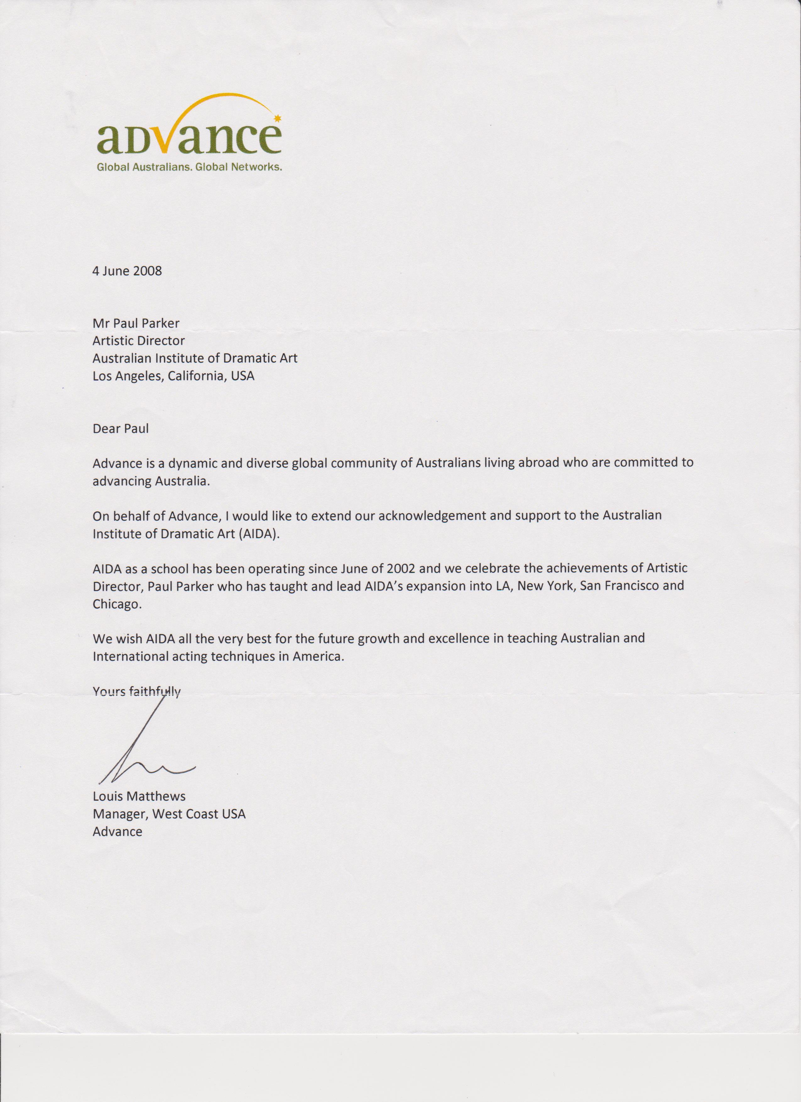 AIDA – Australian Institute of Dramatic Arts – USA 2002- 2011 reference letter reference letter reference letter