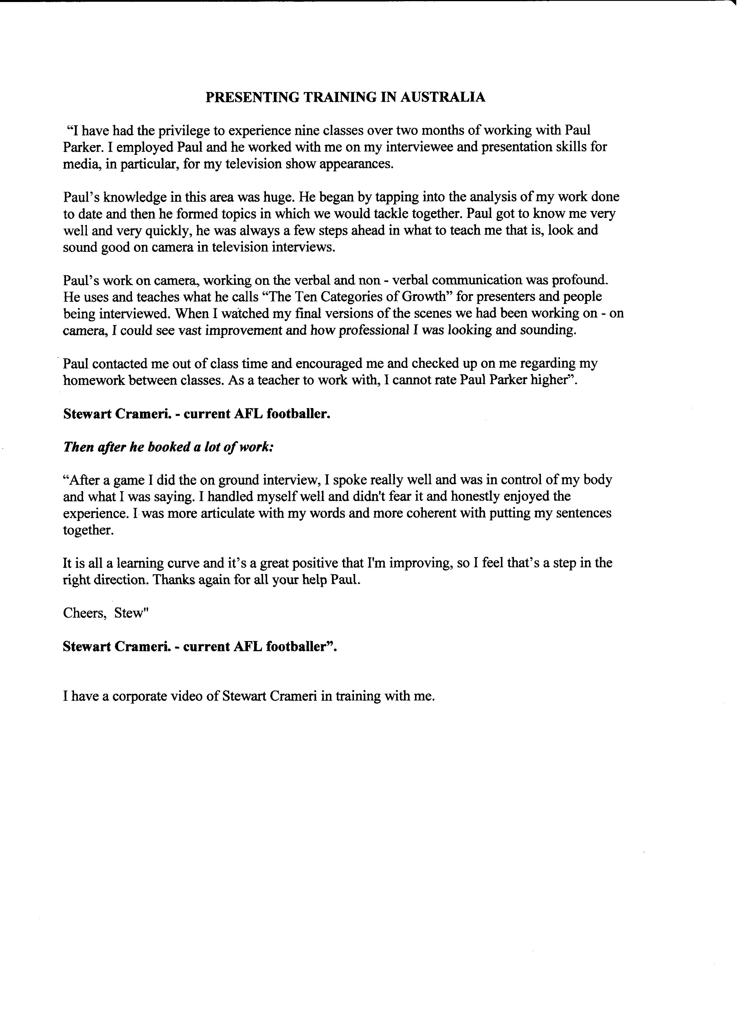 An International teacher of adults, university students and teenagers, I have been teaching since 1990 and taught in the USA from June of 2002 to July 2011. I taught at an acting school in Japan in 2013 and 2014 and at two Universities in China in 2010. I have taught in Australia over many years. I have taught Presenters, especially sports players, AFL (in OZ) & NFL (in the USA), for television and radio since 2002. I have taught business presentation to USA based Corporate company ARF in New York www.thearf.org – reference letter and businessmen in Tokyo, Japan, as well as currently across Australia.